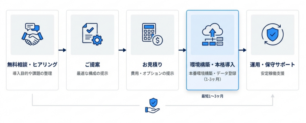 初期は最小構成で導入し、利用状況に応じてサーバー容量や性能を段階的に拡張いただけます。